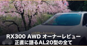 RX300の乗り味は、今どきのSUVとは少し違う。足回りがどっしりしていて、路面の凹凸をしっかり吸収してくれる。ゆっくり流すドライブには、むしろこのくらいの乗り心地のほうが合っていた。